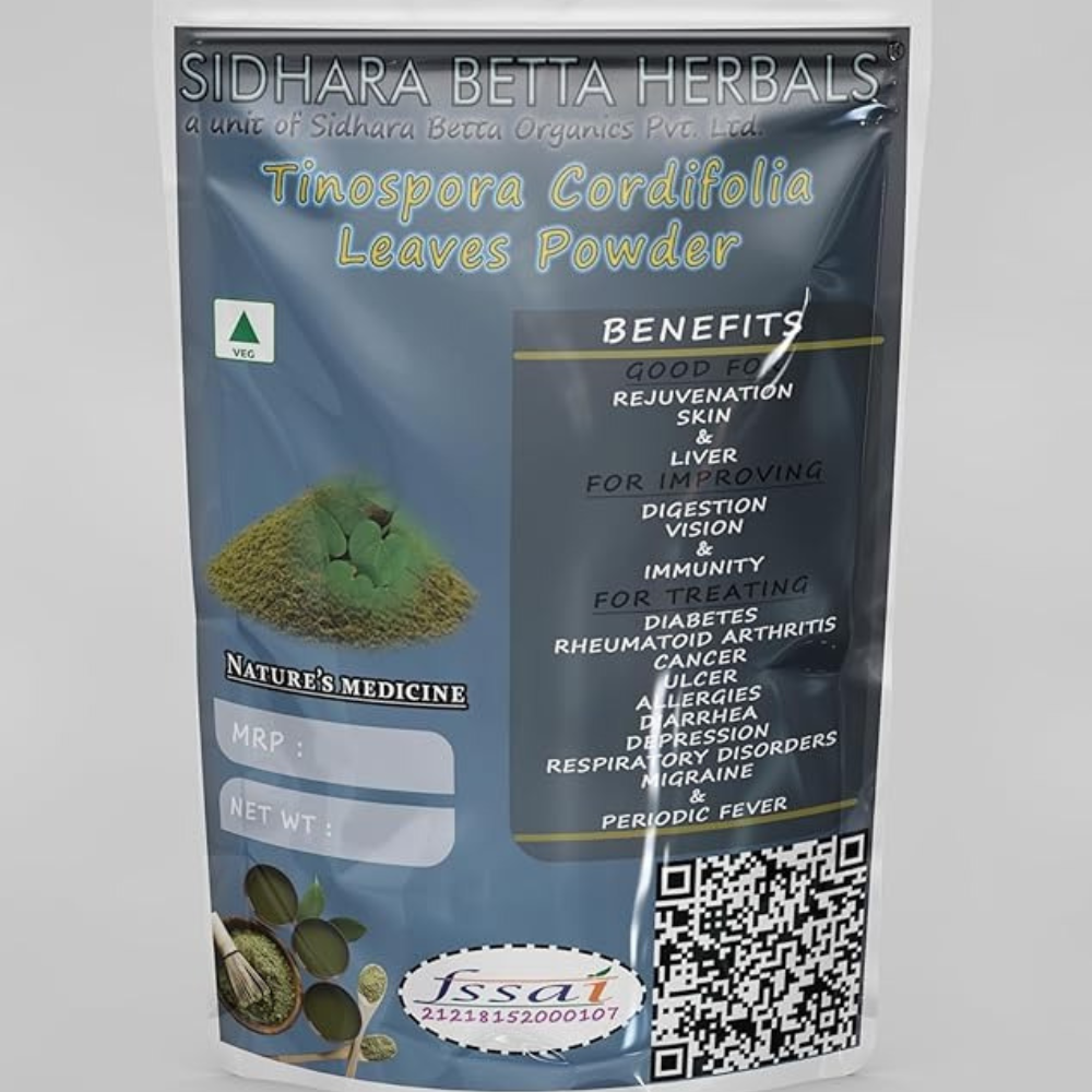 - Sidhara Betta Herbals Amrutha Balli Leaves Powder is made from carefully handpicked leaves of Tinospora Cordifolia, shade-dried to retain their fresh green hue and subtle herbaceous aroma.