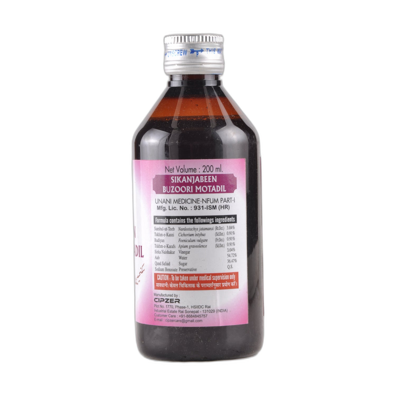 - Cipzer Sharbat Bazoori Motadil is a unani medicine used as liver tonic, diuretic and is higly beneficial in urinary diseases, restlessness, hyperacidity, kidney disorders and fevers.
