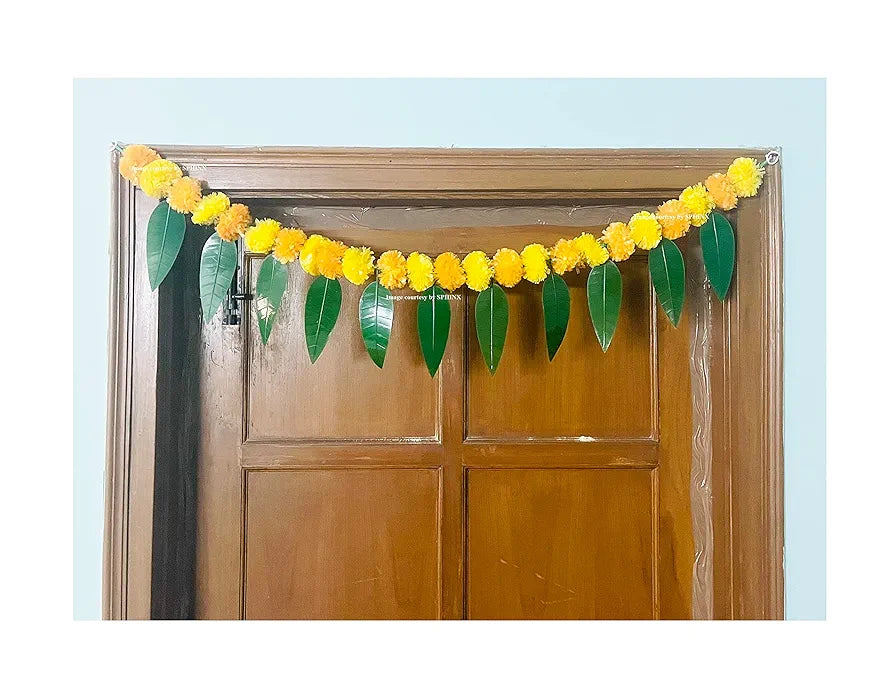 • Offer contains- Sphinx artificial fluffy marigold and mango leaves simple door-window toran/hangings as per selected quantity
