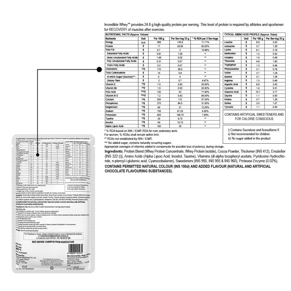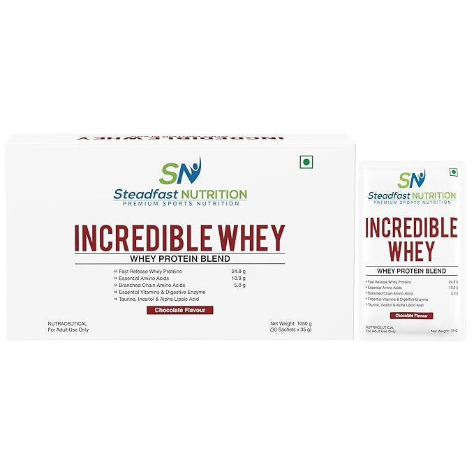 Steadfast Nutrition Incredible Whey Protein - Chocolate - 35 gms Each (30 Sachets)
