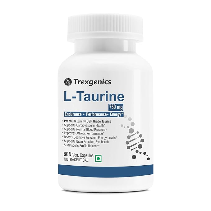 - Trexgenics Taurine 750 mg is a premium quality amino acid that helps maintain proper hydration & electrolyte balance in cells, form bile salts important for digestion, supports general function of Central nervous system & eyes, Improve immune system.
