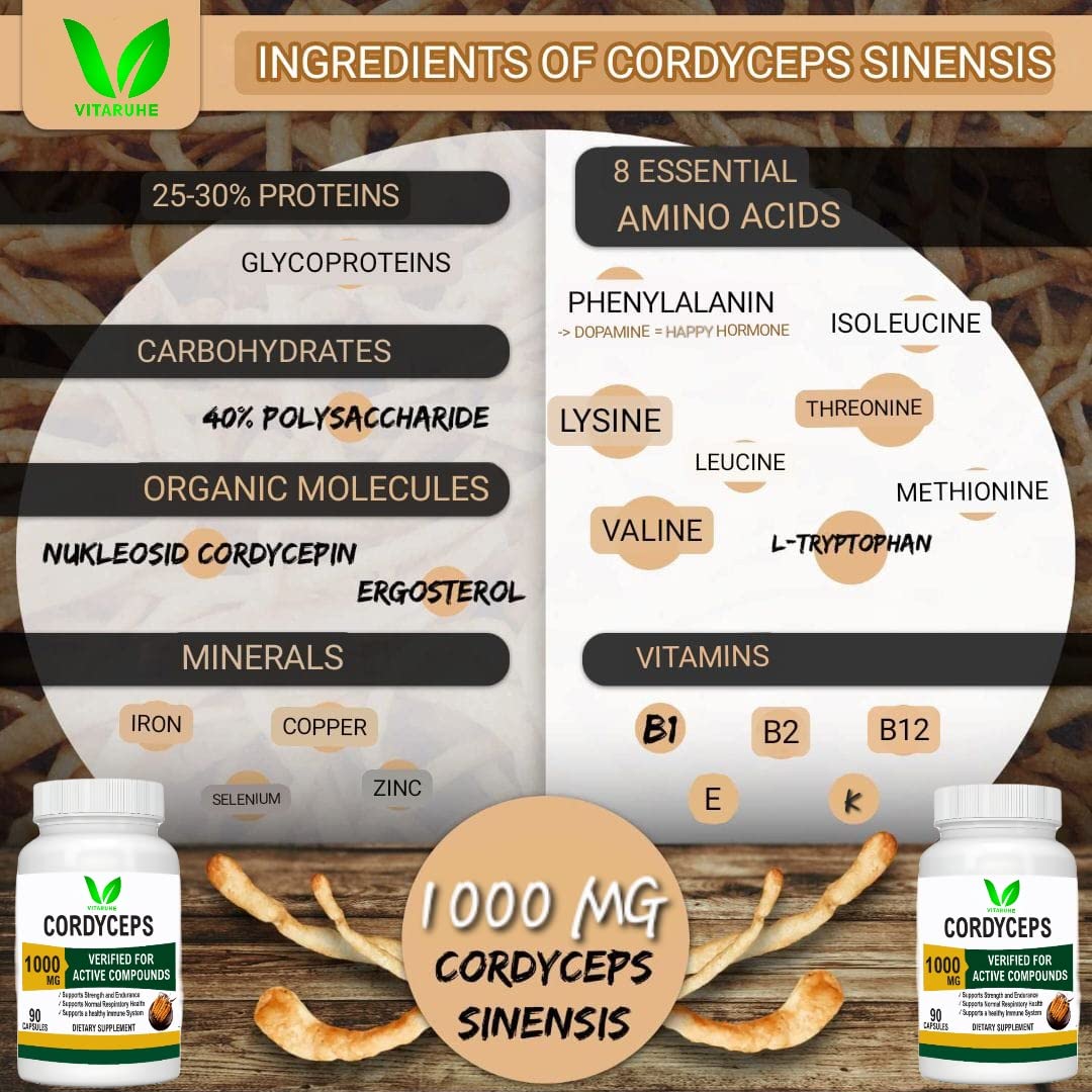 • ENERGY BOOSTING: Vitaruhe Cordyceps can boost energy, endurance, and vitality. Cordyceps was named one of the best natural energy boosters by Alternative Medicine Magazine!